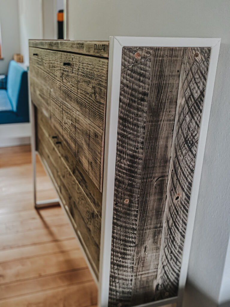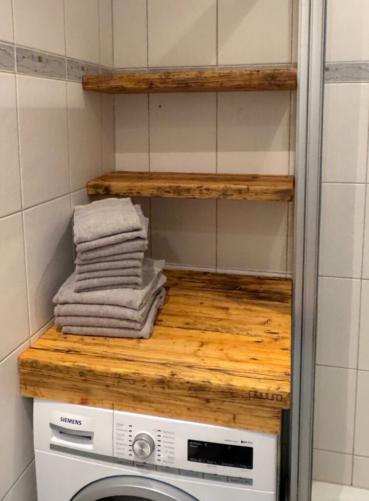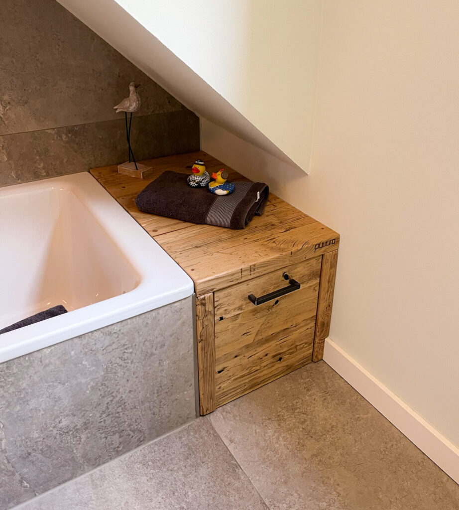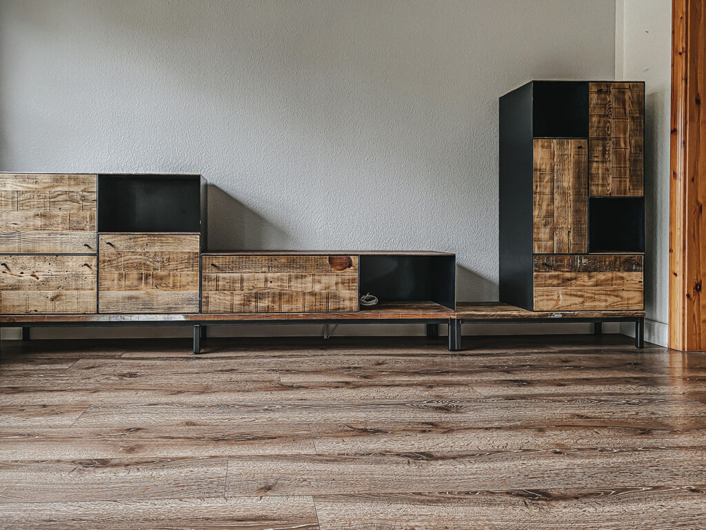 Mit Regalen und Schränken aus Holzbohle und Eiche gut organisiert.