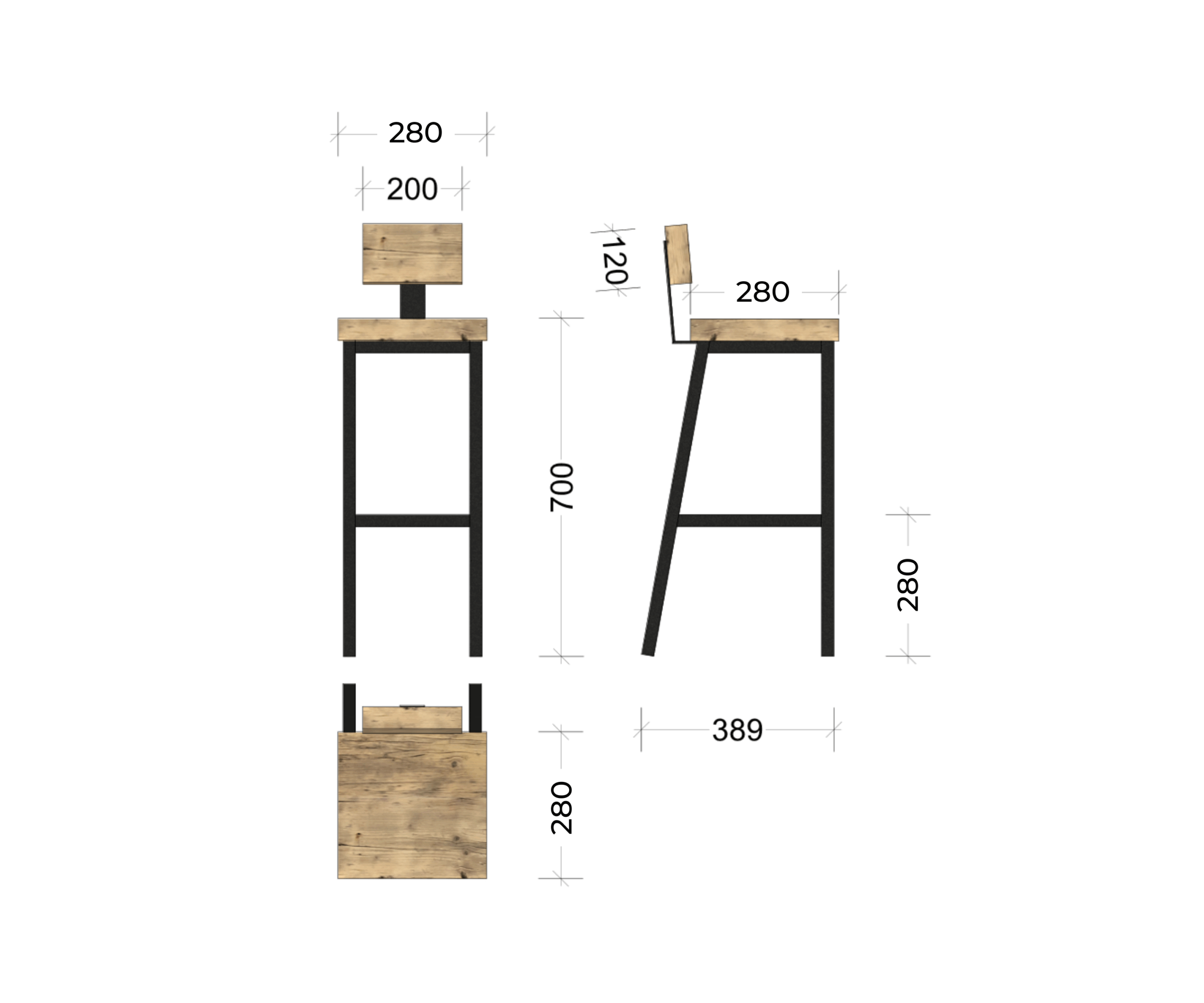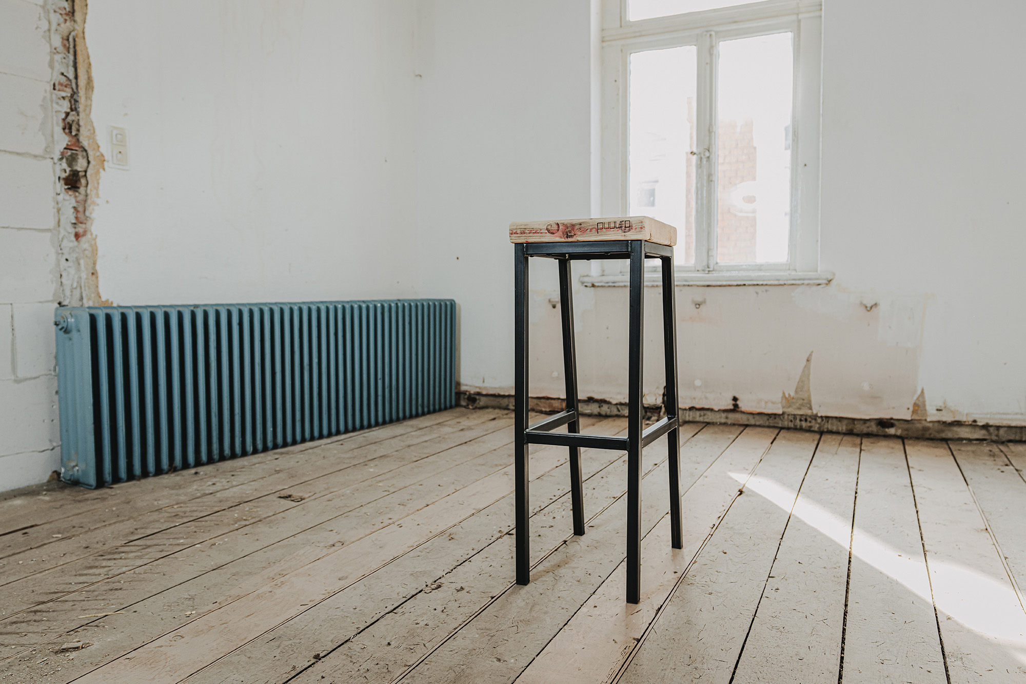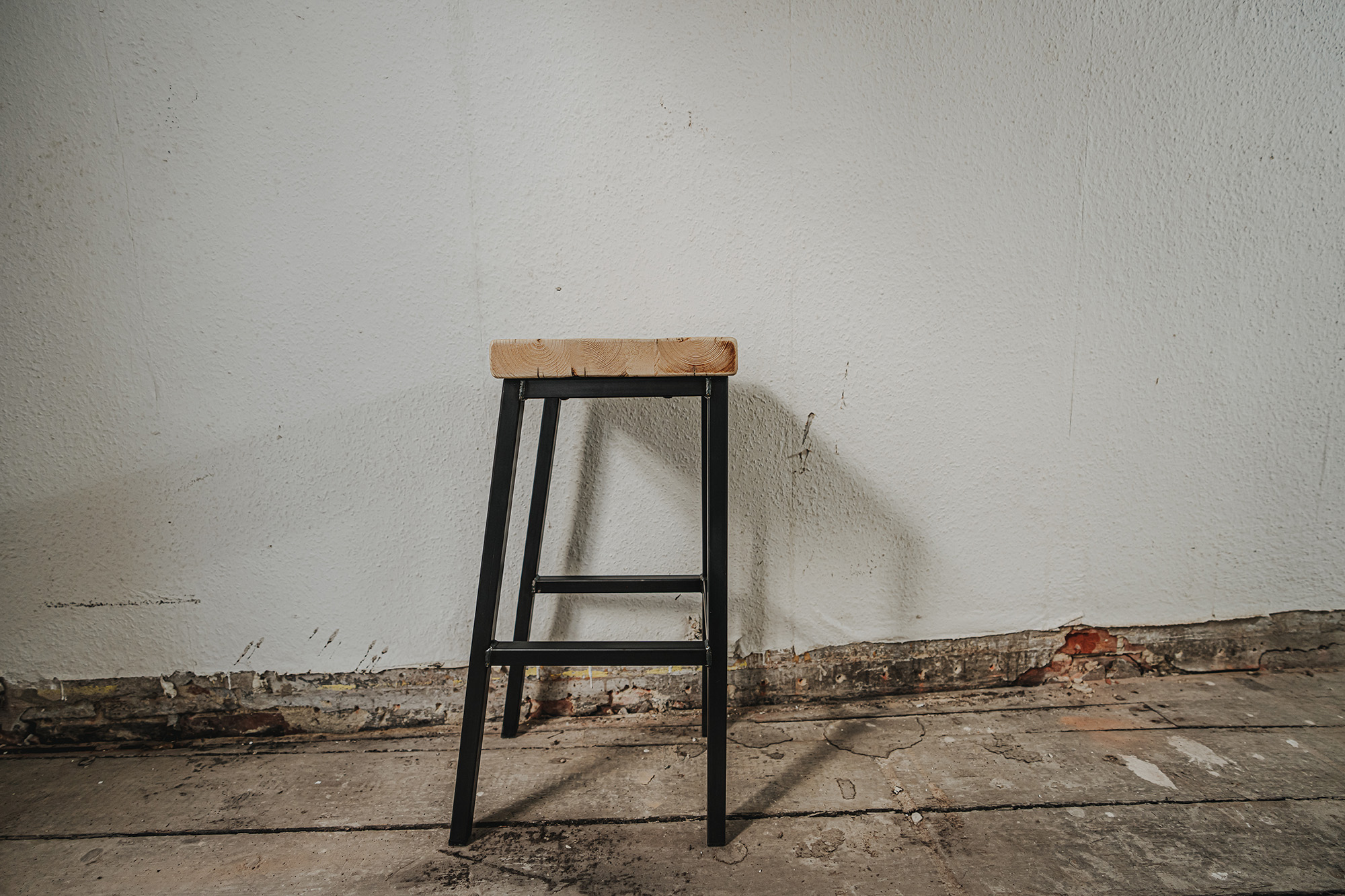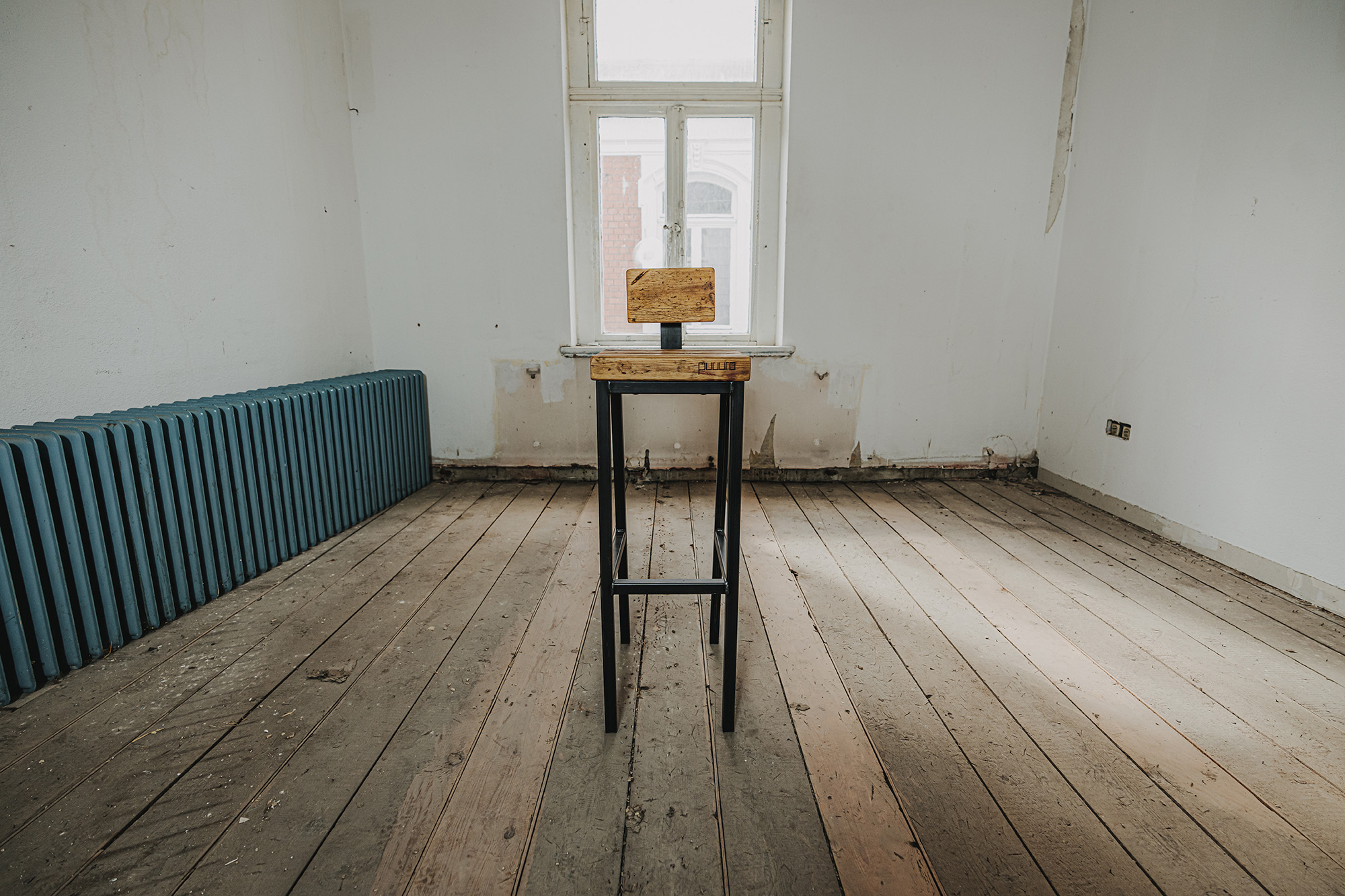Wie wäre es, wenn du auf unserem Barhocker Platz nimmst? Der Hocker besteht aus einem massiven Gestell aus Schwarzstahl und einer Sitzfläche aus echten Gerüstbohlen. Du hast die Wahl, ob du eine kleine Lendenstütze haben möchtest oder nicht - wir bieten beides an!