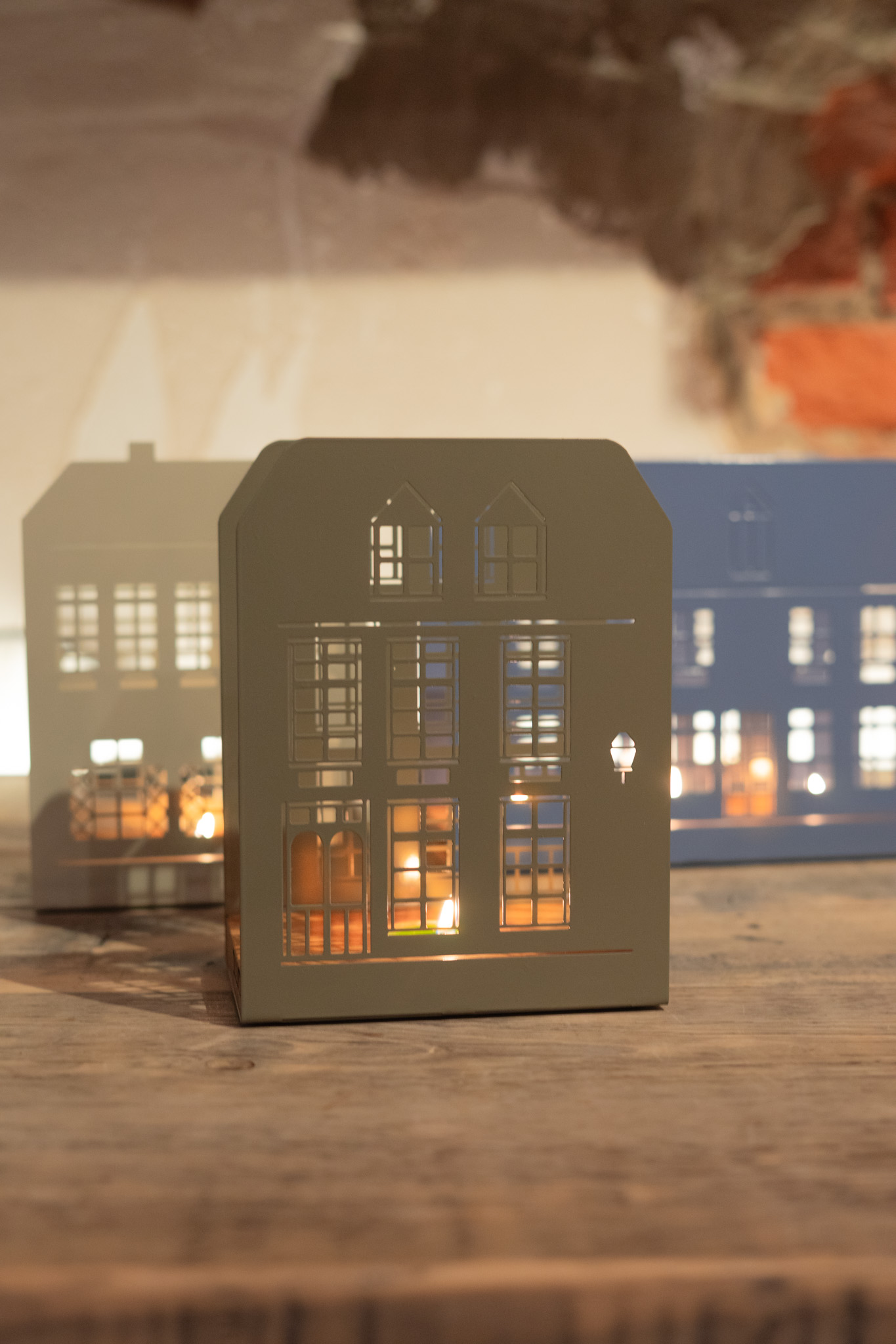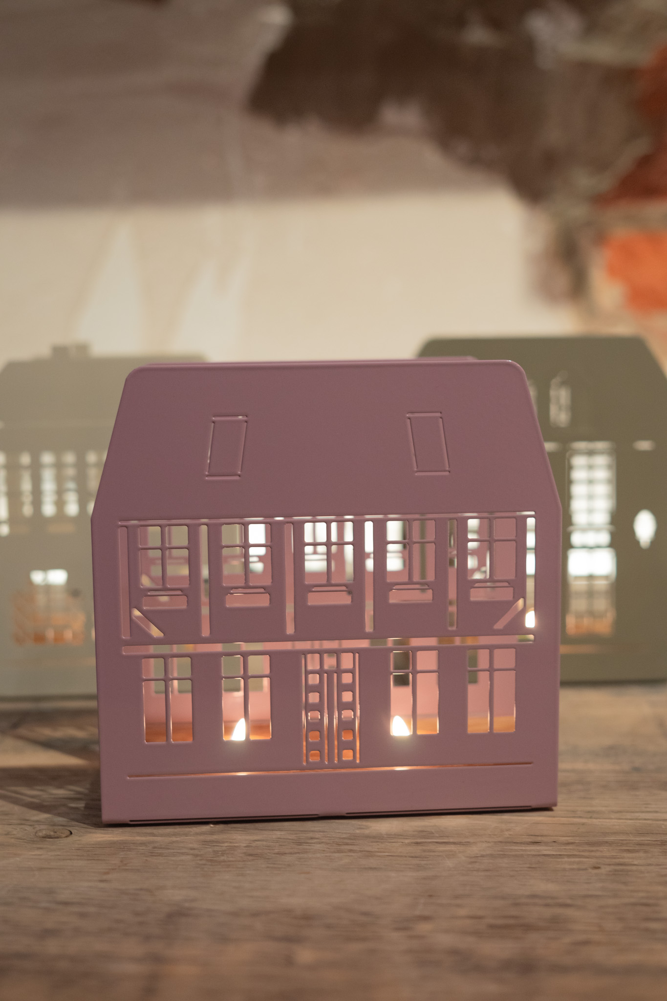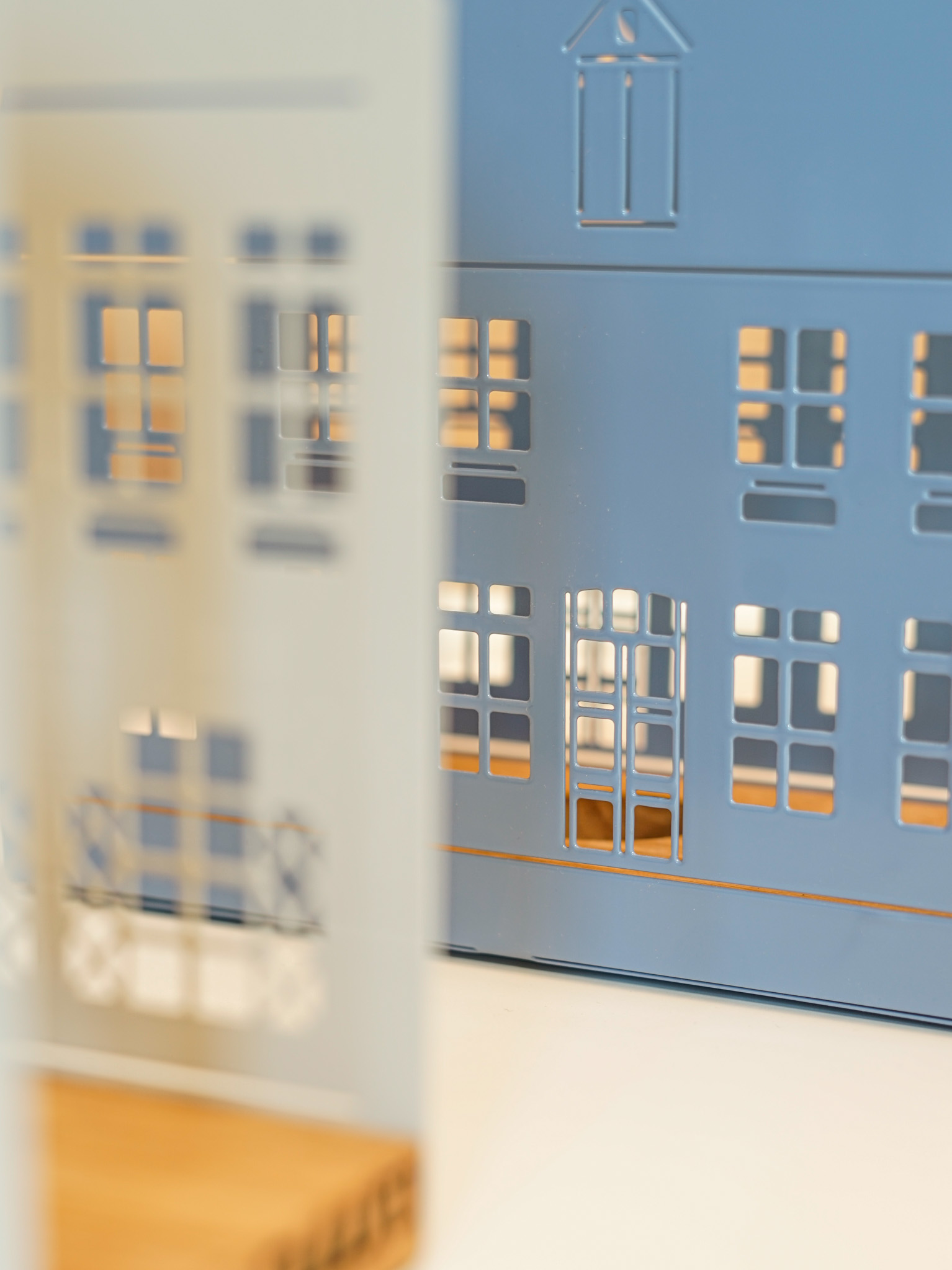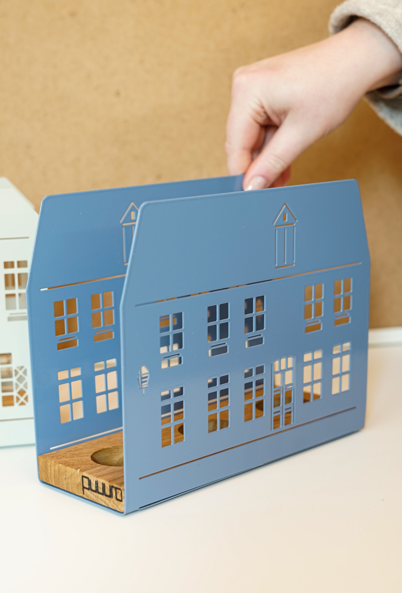 Sie bestehen aus pulverbeschichtetem Stahl und Wildeiche. Je nach Häuschen kannst du 1-3 Teelichter pro Haus unterbringen.