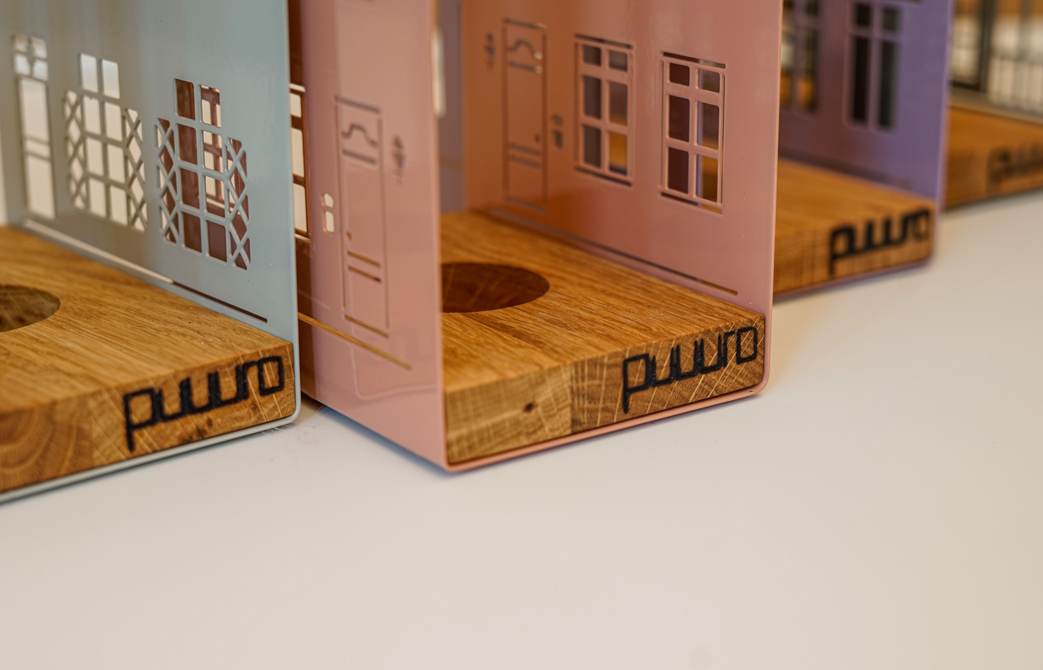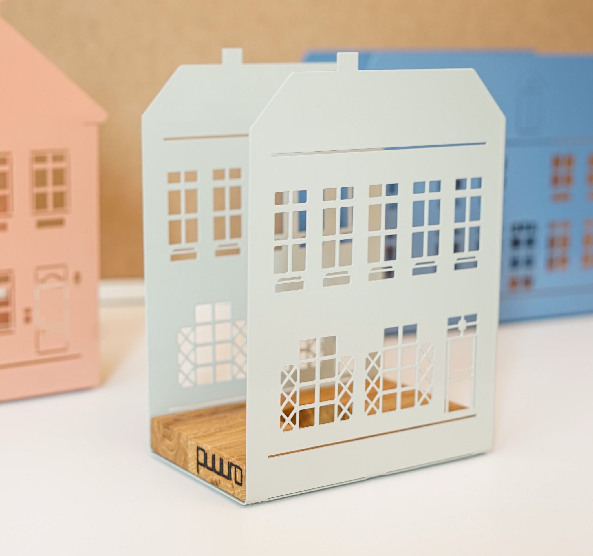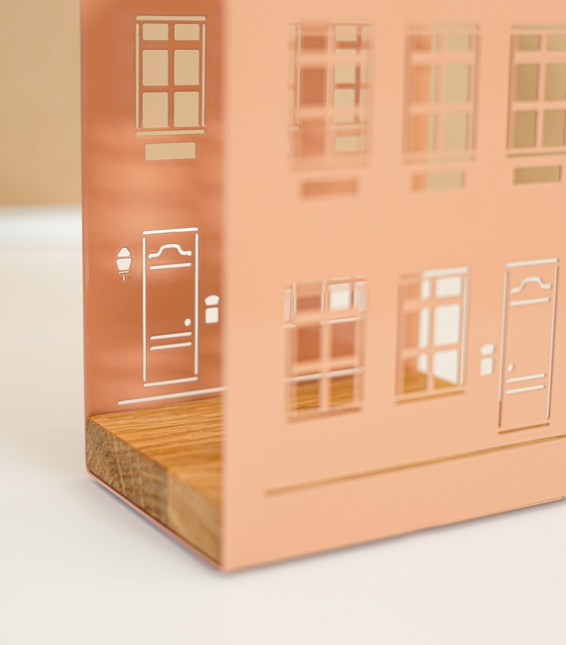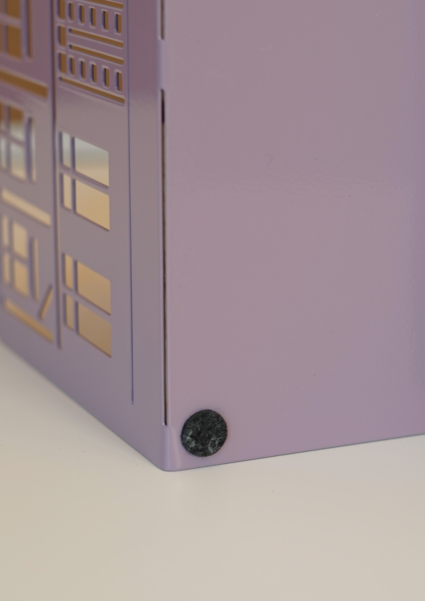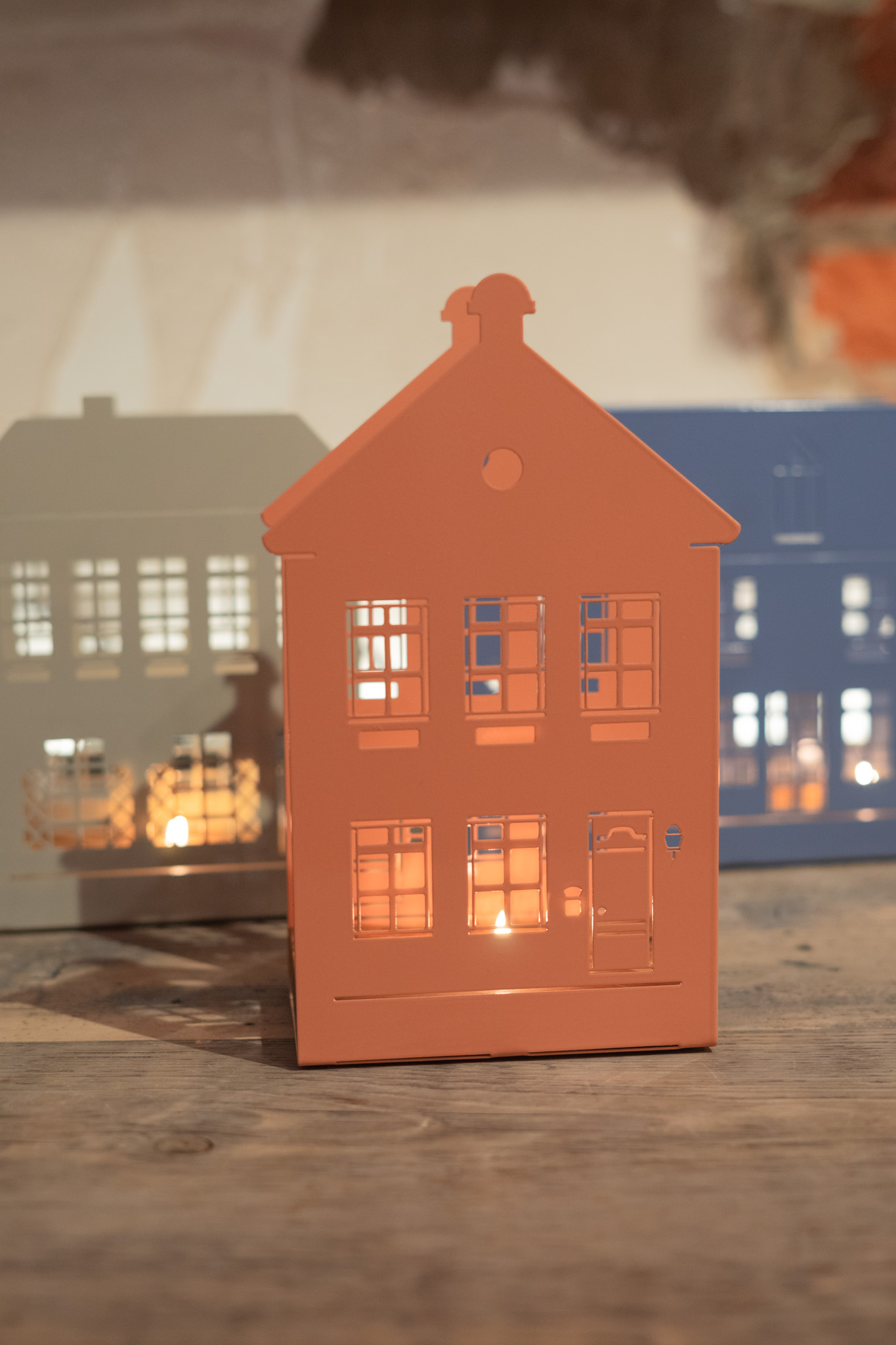 Sie bestehen aus pulverbeschichtetem Stahl und Wildeiche. Je nach Häuschen kannst du 1-3 Teelichter pro Haus unterbringen.