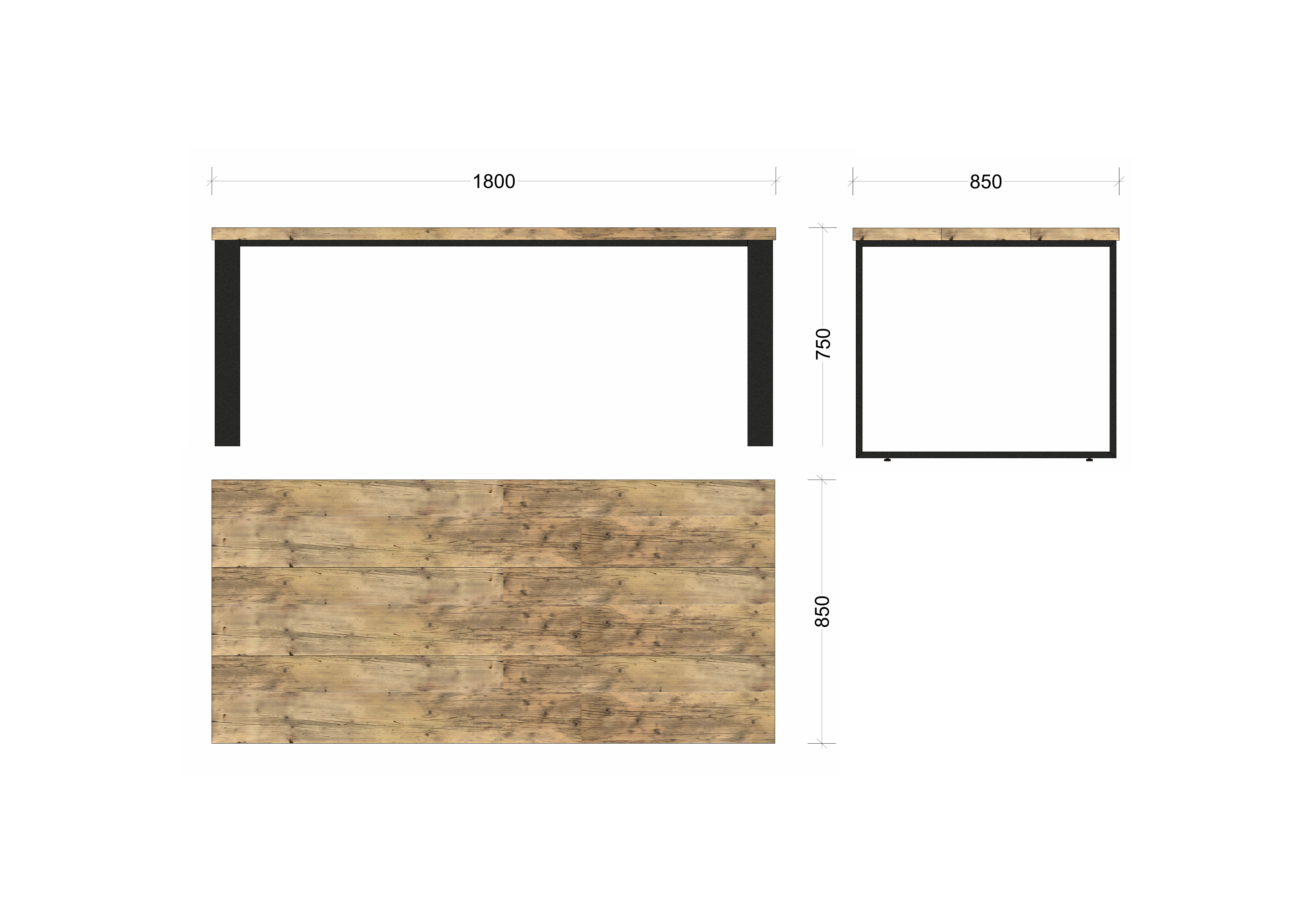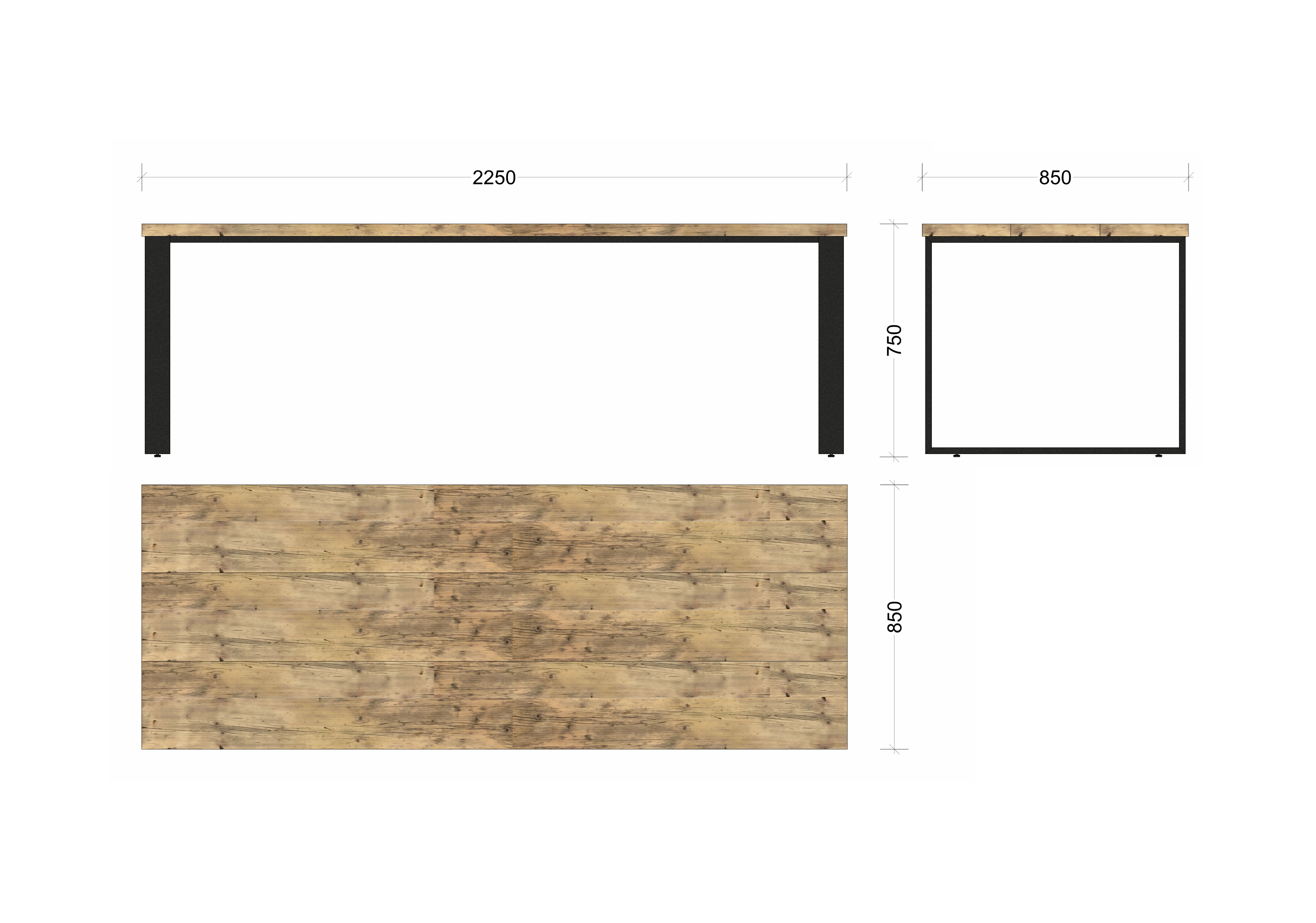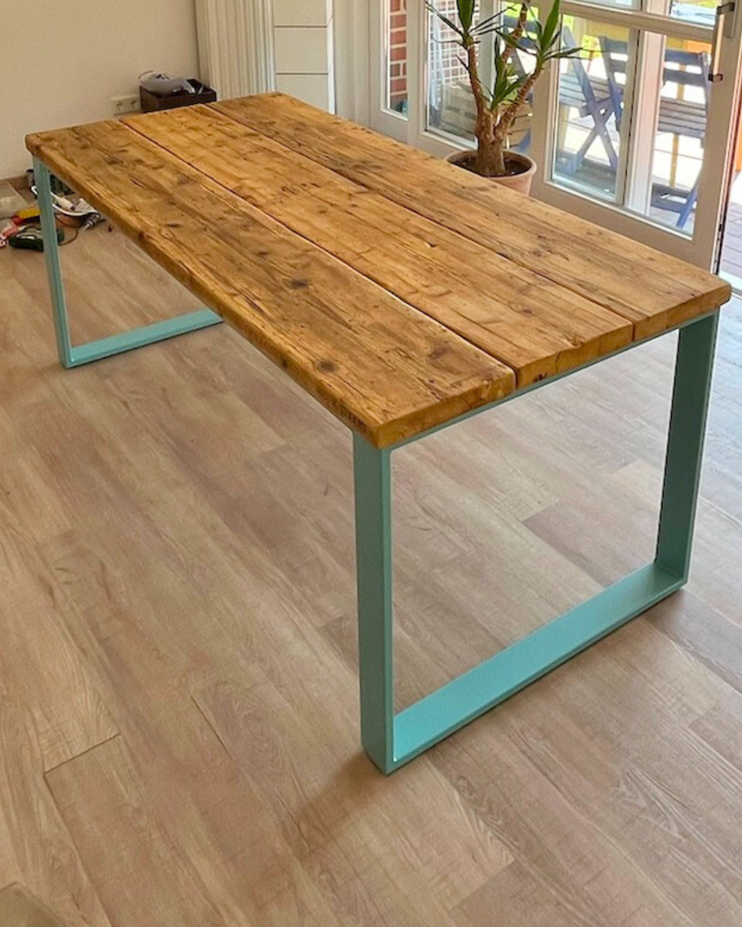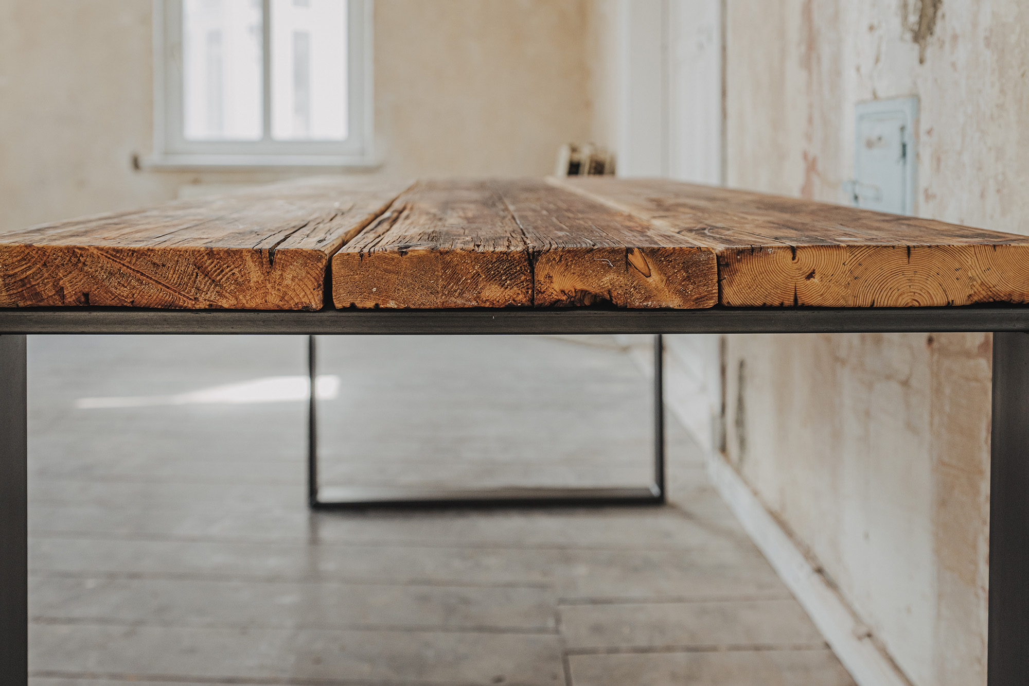 Tiefe Tischplatte ca. 85 cm (3 Bohlen in Originalbreite à ca. 28 cm)