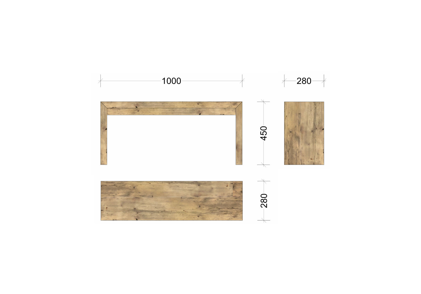 Die Klassik-Möbel sind aus unseren recycelten Gerüstbohlen hergestellt, ohne Oberflächenschutz. Da es sich bei den Bohlen um ein Weichholz handelt, vornehmlich Fichte oder Tanne, welches auf Temperatur- und Feuchtigkeitsschwankungen reagiert, können sich Maße und Oberflächen im Laufe der Zeit noch leicht verändern. Auch nach der Verarbeitung der Bohlen und der Herstellung der Möbel können noch Trocknungsrisse, Verwerfungen, Schwindungen oder Quellungen auftreten. Gelegentlich können sich Splitter, Äste oder ausgeschliffene Fehlstellen von der Oberfläche abheben oder lösen. Im Außenbereich und gerade bei Verwendung ohne ein Ölbehandlung treten diese Eigenschaften öfter mal auf. Das ist ein natürliches Verhalten von Holz.