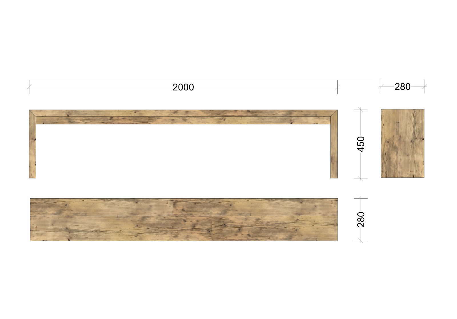 Sitztiefe ca. 28 cm (eine Bohle in Originalbreite)